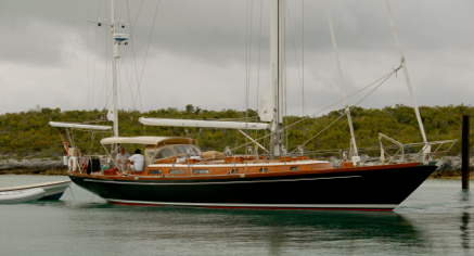 lies the stately yawl at anchor, swinging to the tide.